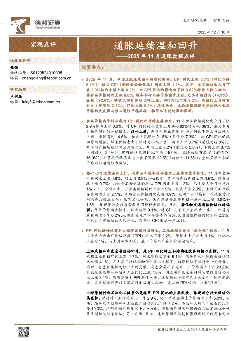 德邦证券-2025年11月通胀数据点评:通胀延续温和回升-251210