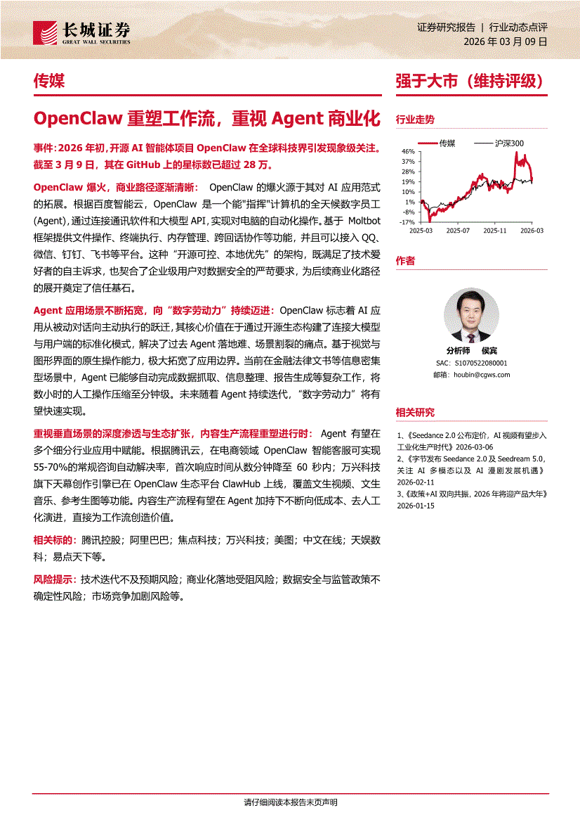 传媒行业:长城证券-传媒行业动态点评:OpenClaw重塑工作流,重视Agent商业化-260309