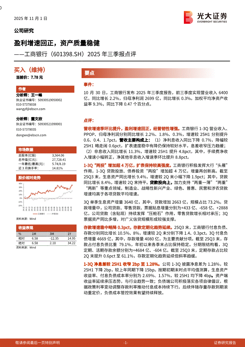 工商银行:光大证券-工商银行-601398-2025年三季报点评:盈利增速回正,资产质量稳健-251101