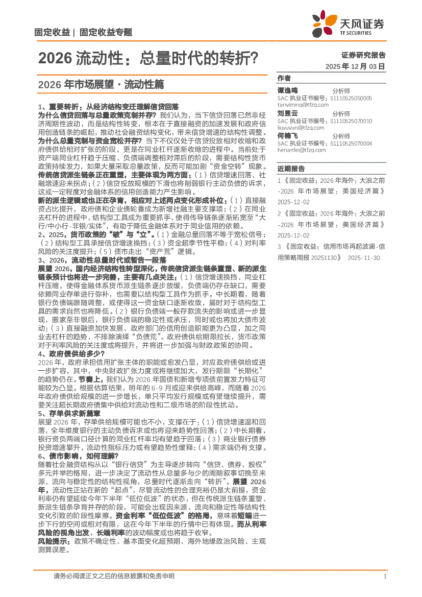 天风证券-2026年市场展望·流动性篇:2026流动性,总量时代的转折?-251203