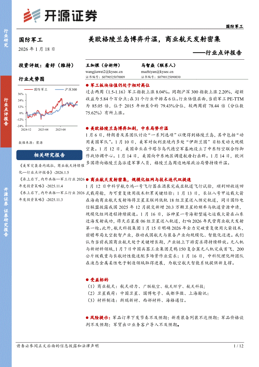 国防军工行业:开源证券-国防军工行业点评报告:美欧格陵兰岛博弈升温,商业航天发射密集-260118