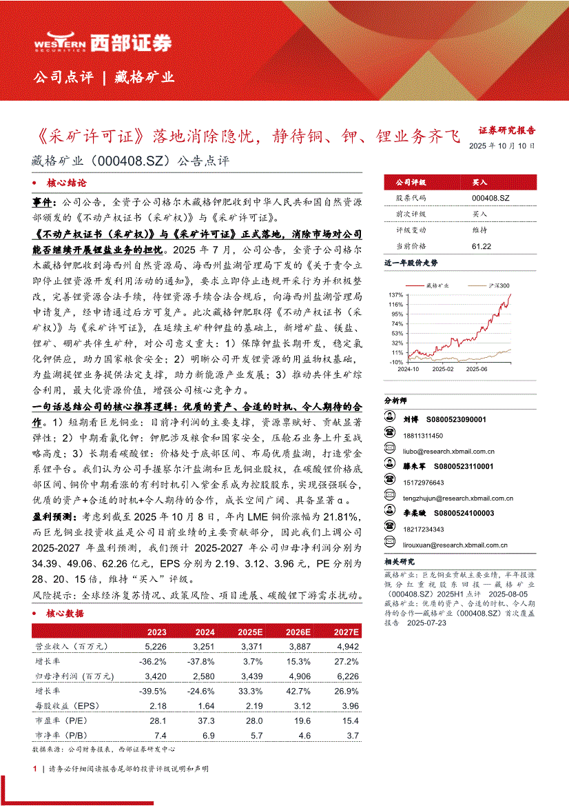 藏格矿业:西部证券-藏格矿业-000408-公告点评:《采矿许可证》落地消除隐忧,静待铜、钾、锂业务齐飞-251010