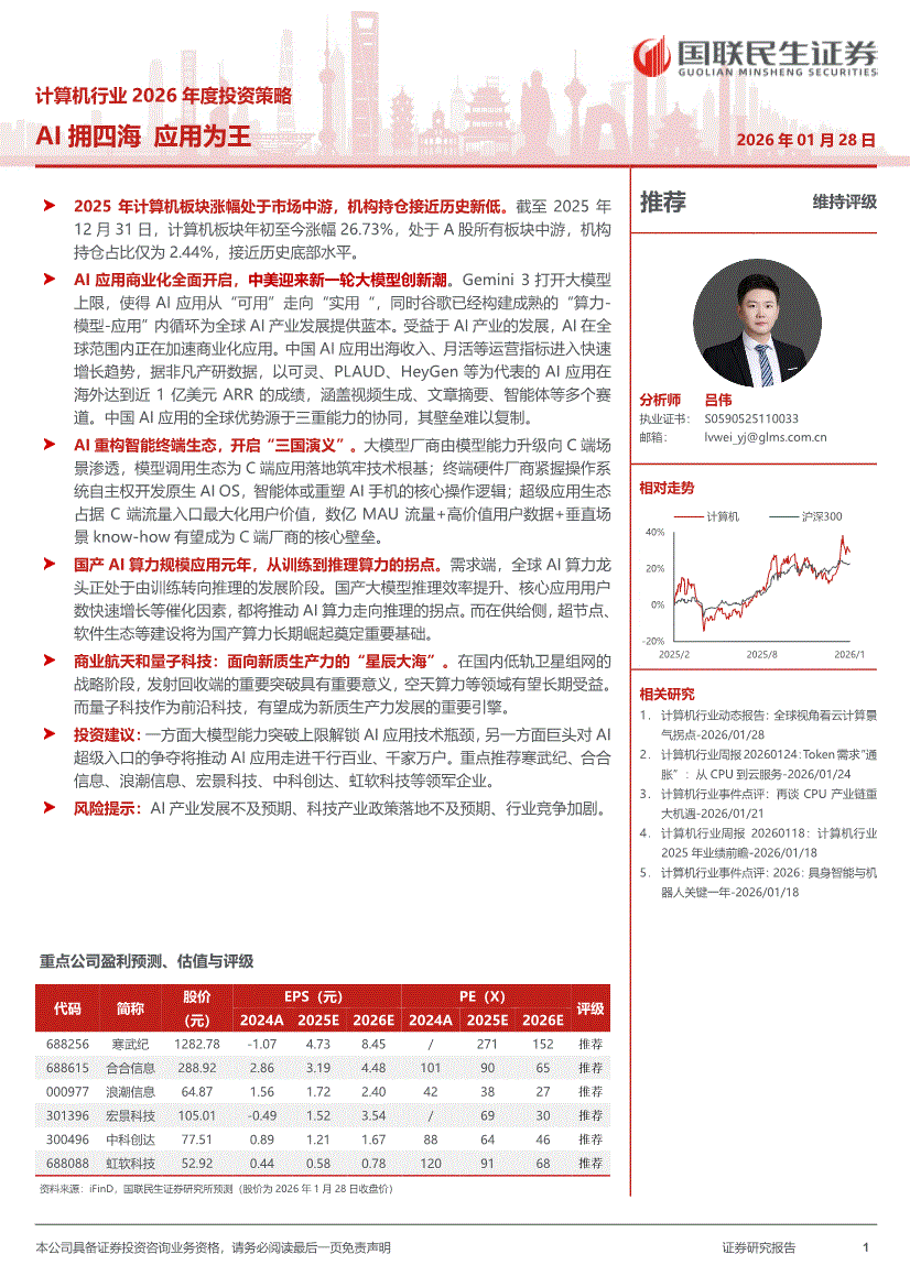 计算机行业:国联民生证券-计算机行业2026年度投资策略:AI拥四海,应用为王-260128