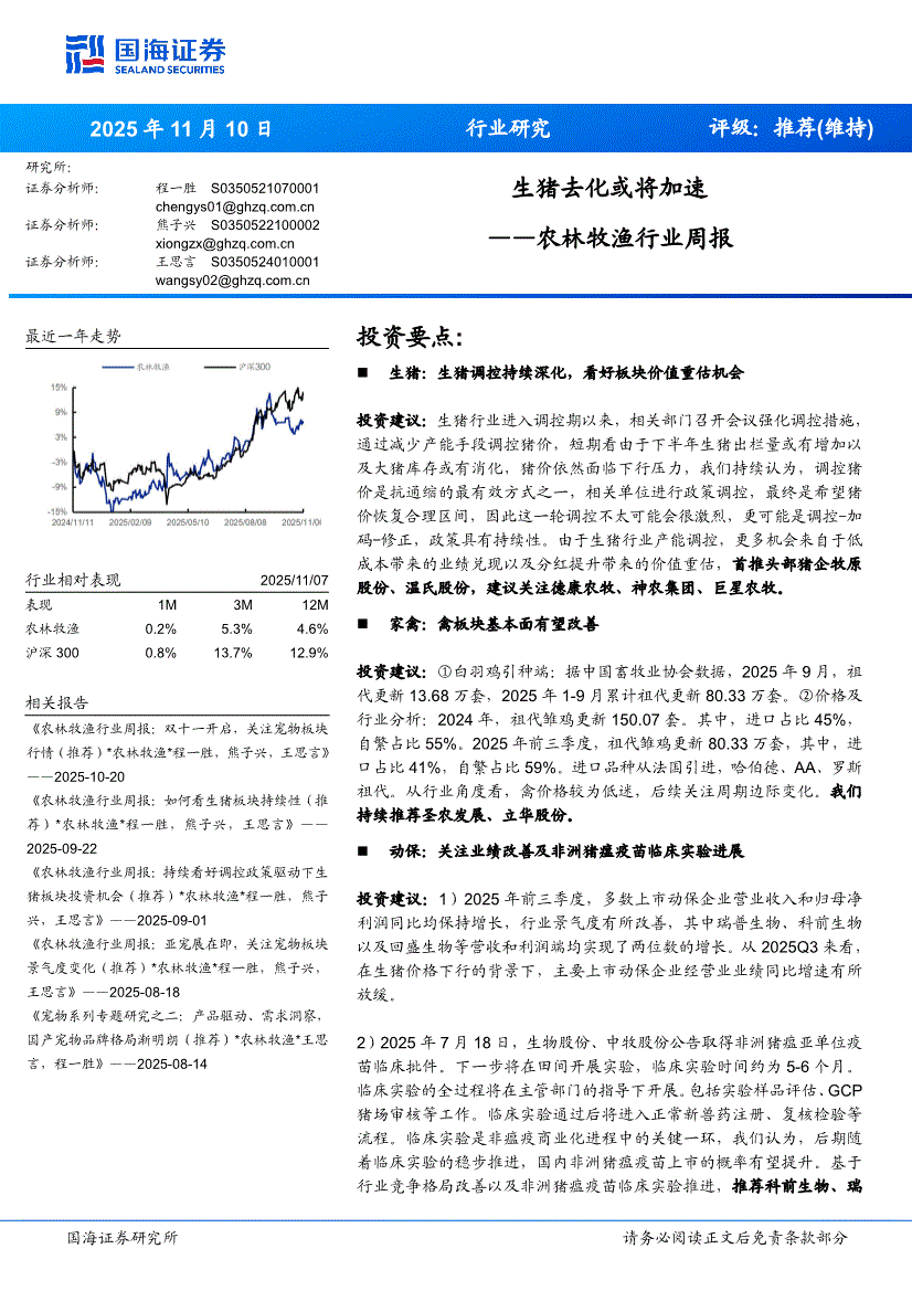 农林牧渔行业:国海证券-农林牧渔行业周报:生猪去化或将加速-251110