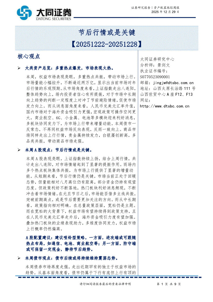 大同证券-资产配置跟踪周报:节后行情或是关键-251229