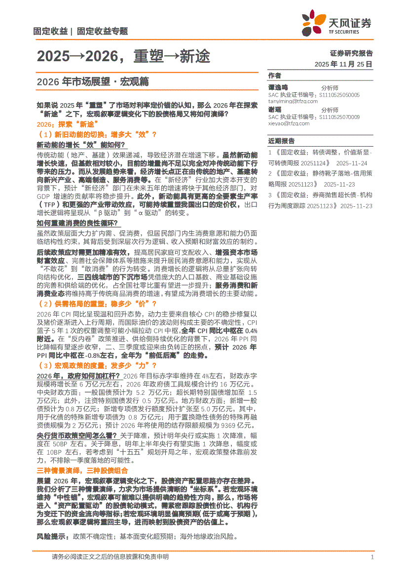 天风证券-2026年市场展望·宏观篇:2025→2026,重塑→新途-251125