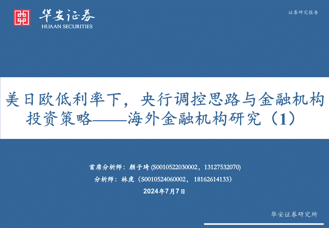 华安证券-海外金融机构研究(1):美日欧低利率下,央行调控思路与金融机构投资策略-240707
