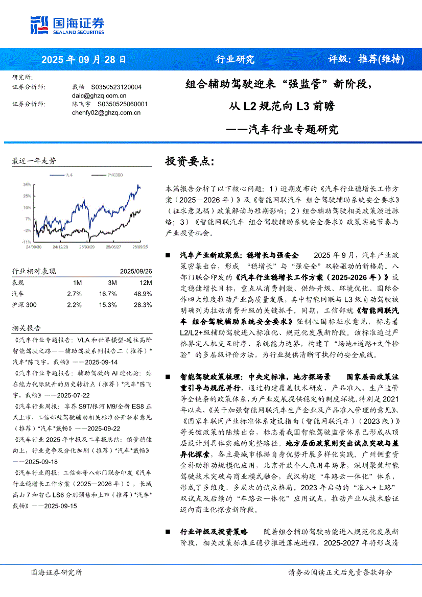 汽车行业:国海证券-汽车行业专题研究:组合辅助驾驶迎来“强监管”新阶段,从L2规范向L3前瞻-250928
