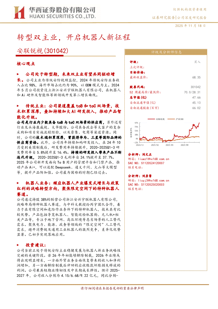 安联锐视:华西证券-安联锐视-301042-转型双主业,开启机器人新征程-251118