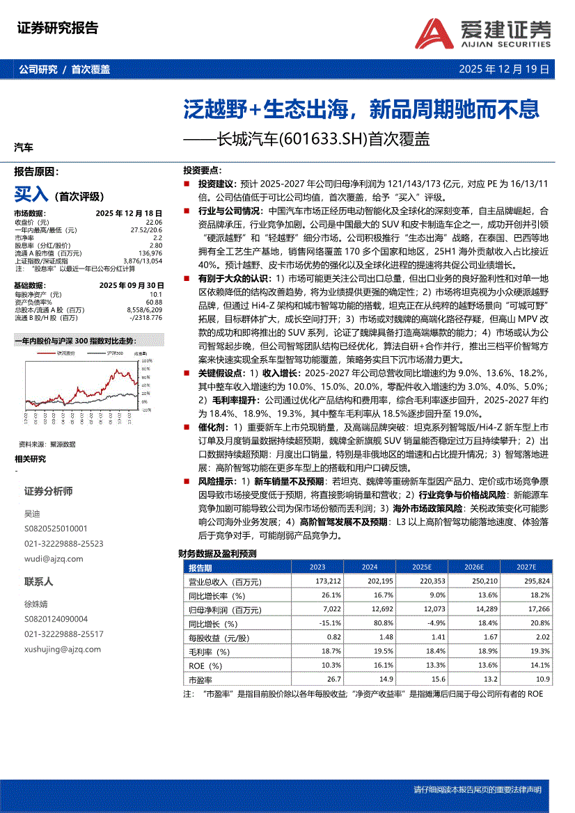 长城汽车:爱建证券-长城汽车-601633-首次覆盖:泛越野+生态出海,新品周期驰而不息-251219