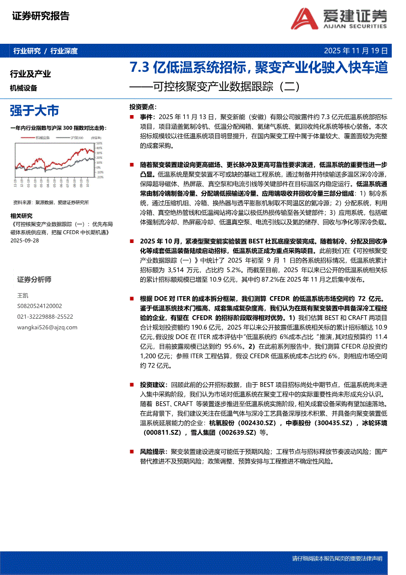 机械设备行业:爱建证券-机械设备行业可控核聚变产业数据跟踪(二):7.3亿低温系统招标,聚变产业化驶入快车道-251119