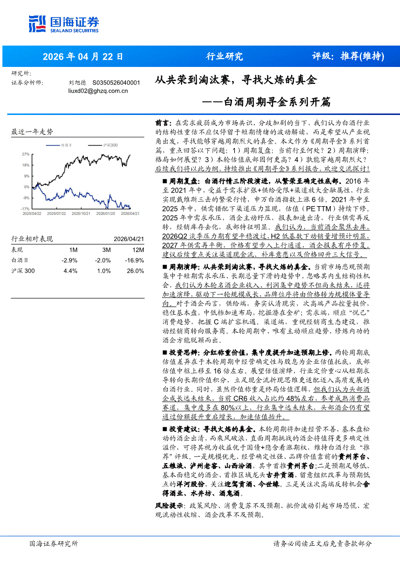 白酒行业:国海证券-白酒行业周期寻金系列开篇:从共荣到淘汰赛,寻找火炼的真金-260422