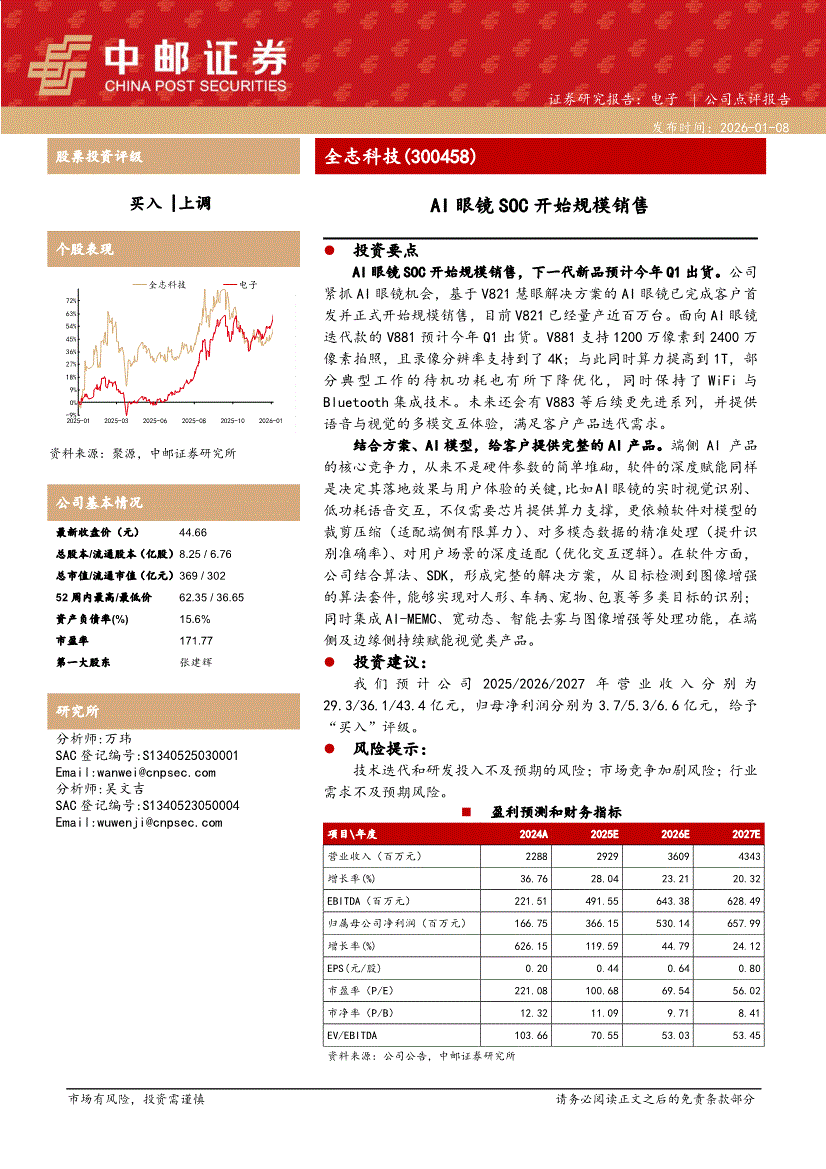 全志科技:中邮证券-全志科技-300458-AI眼镜SOC开始规模销售-260108