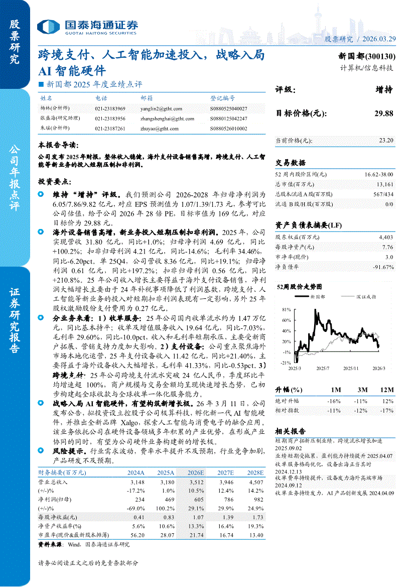 新国都:国泰海通证券-新国都-300130-2025年度业绩点评:跨境支付、人工智能加速投入,战略入局AI智能硬件-260329