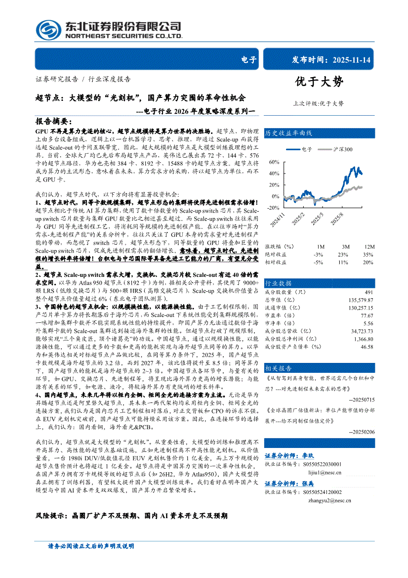 电子行业:东北证券-电子行业2026年度策略深度系列一:超节点,大模型的“光刻机”,国产算力突围的革命性机会-251114