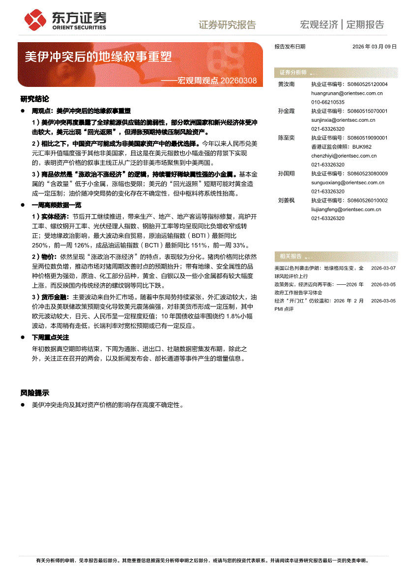 东方证券-宏观周观点:美伊冲突后的地缘叙事重塑-260309