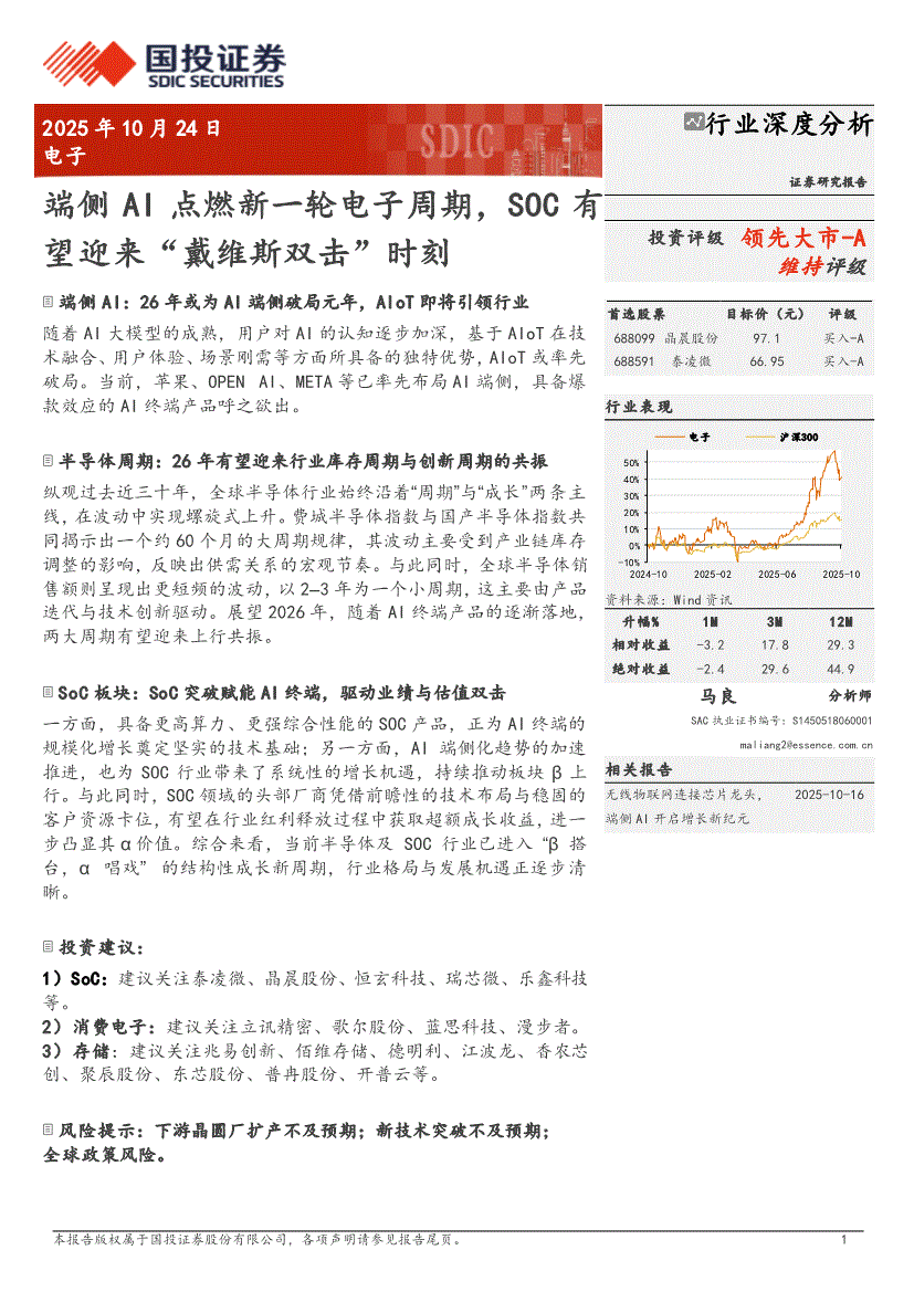 电子行业:国投证券-电子行业深度分析:端侧AI点燃新一轮电子周期,SOC有望迎来“戴维斯双击”时刻-251024