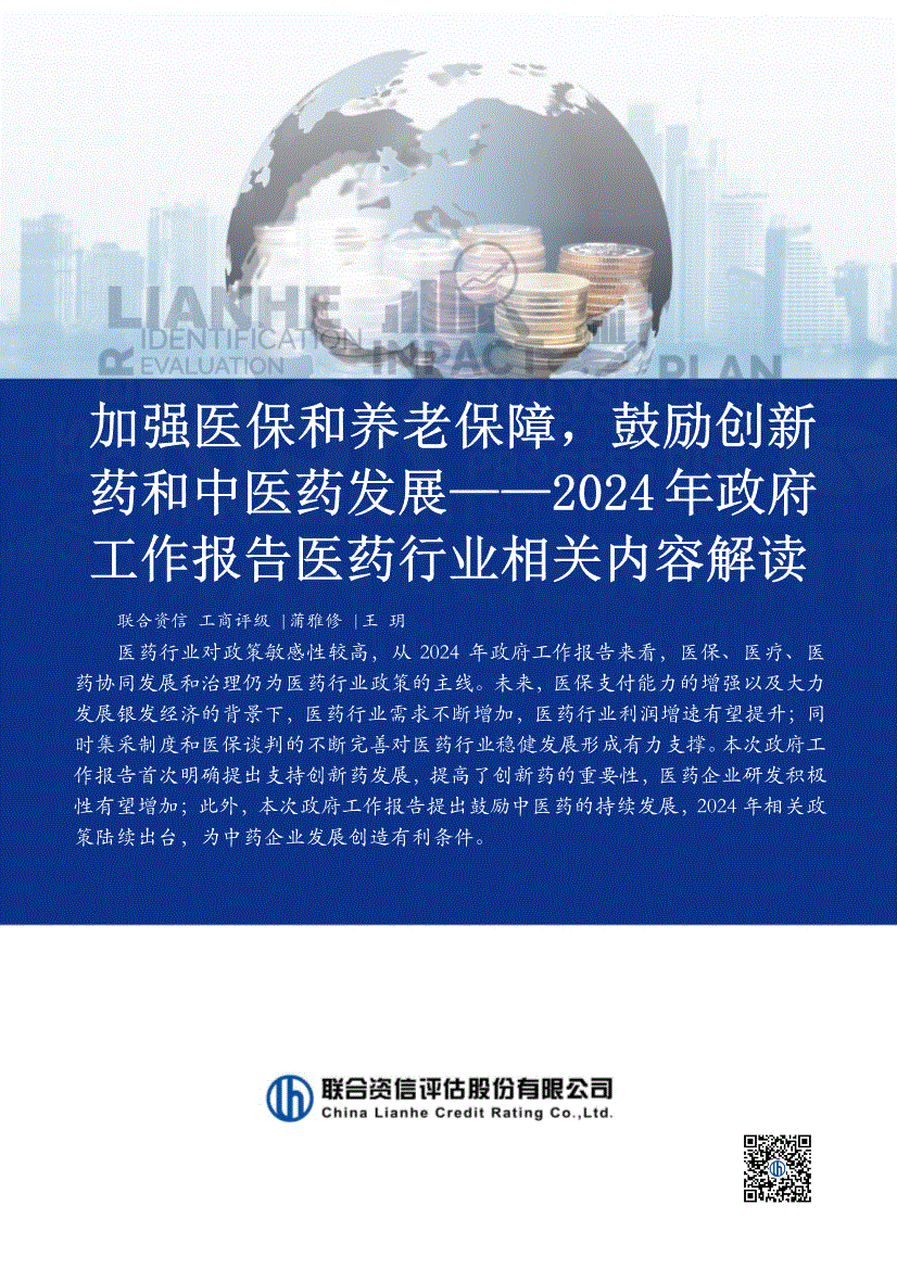 医药行业:联合资信-2024年政府工作报告医药行业相关内容解读:加强医保和养老保障,鼓励创新药和中医药发展-240315