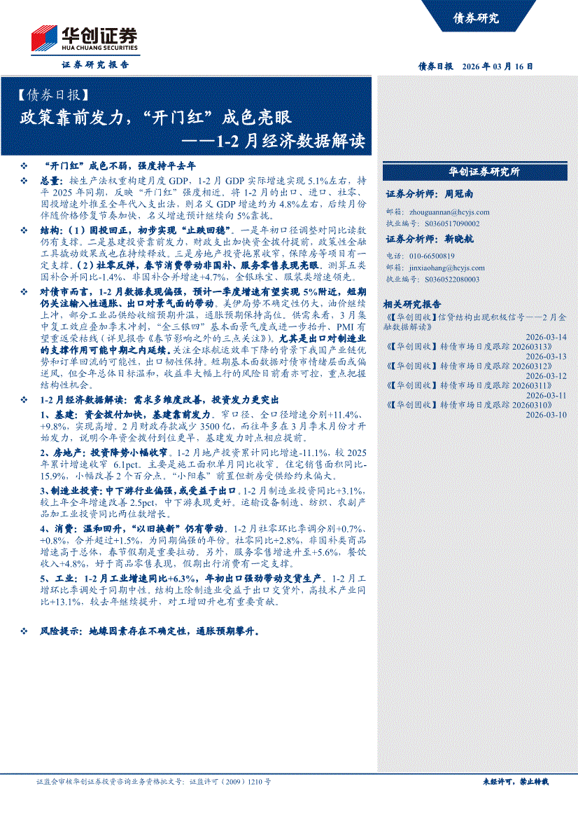 华创证券-1~2月经济数据解读:政策靠前发力,“开门红”成色亮眼-260316