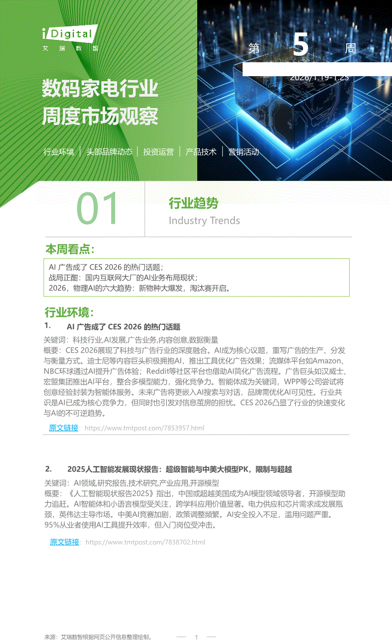 数码家电行业:艾瑞咨询-数码家电行业周度市场观察:2026年第5周-260125