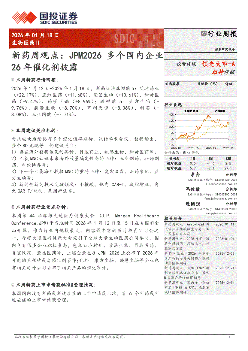 生物医药行业:国投证券-生物医药Ⅱ行业新药周观点:JPM2026多个国内企业26年催化剂披露-260118