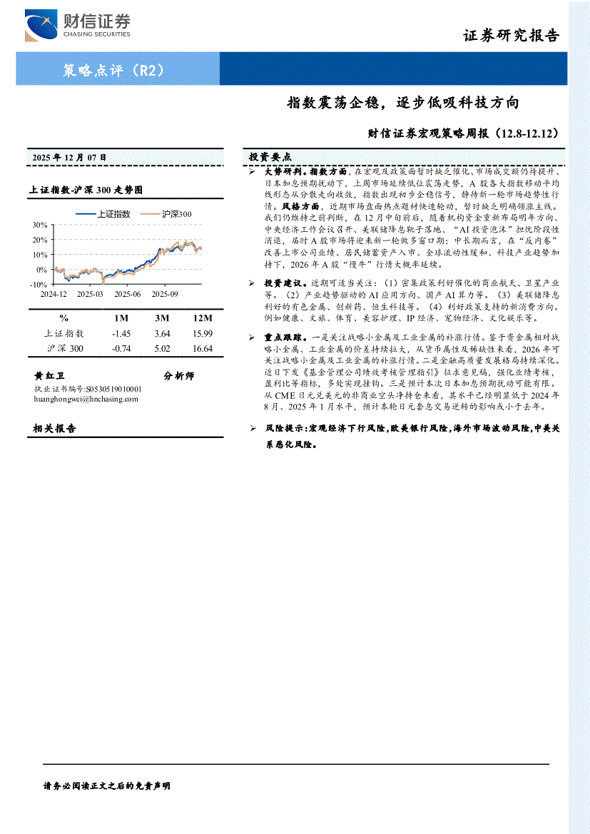 财信证券-宏观策略周报:指数震荡企稳,逐步低吸科技方向-251207