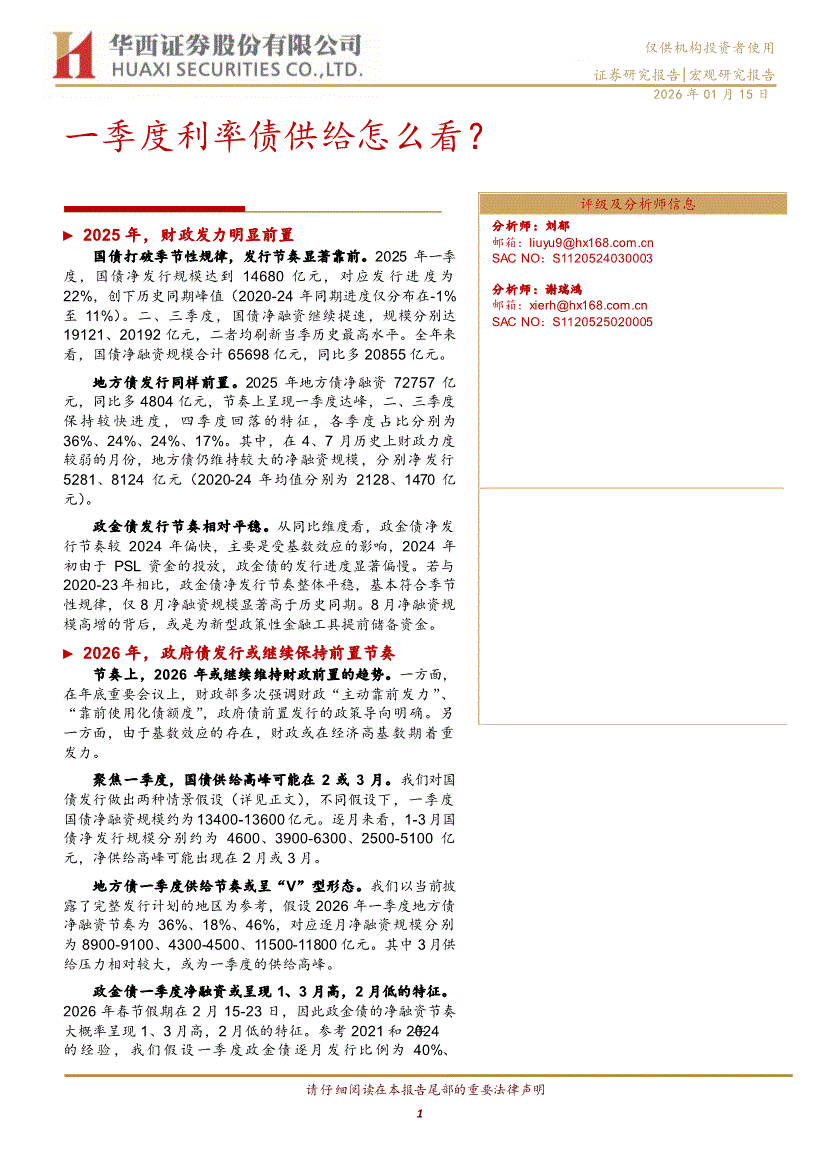 华西证券-一季度利率债供给怎么看?-260115