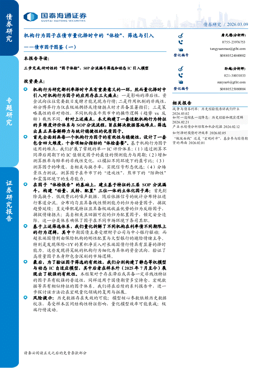 国泰海通证券-债市因子图鉴(一):机构行为因子在债市量化择时中的“体检”、筛选与引入-260309