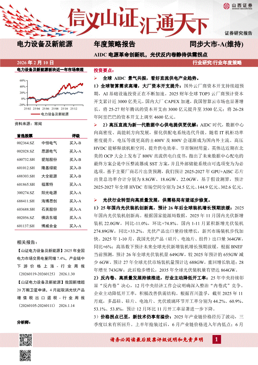 电力设备及新能源行业:山西证券-电力设备及新能源行业年度策略报告:AIDC电源革命创新机,光伏反内卷静待供需拐点-260210