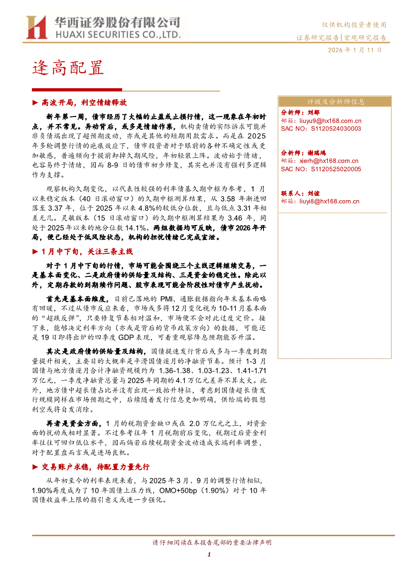 华西证券-逢高配置-260111