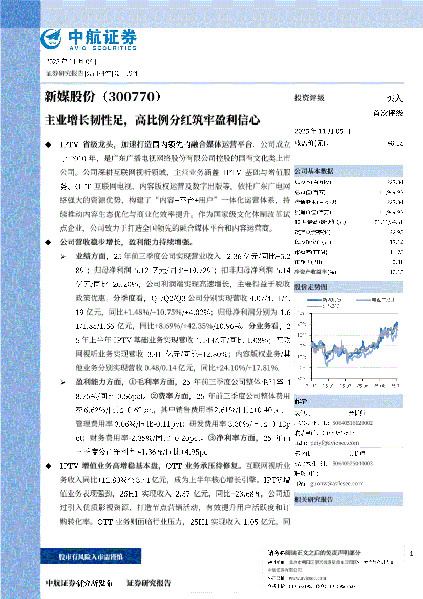 新媒股份:中航证券-新媒股份-300770-主业增长韧性足,高比例分红筑牢盈利信心-251106