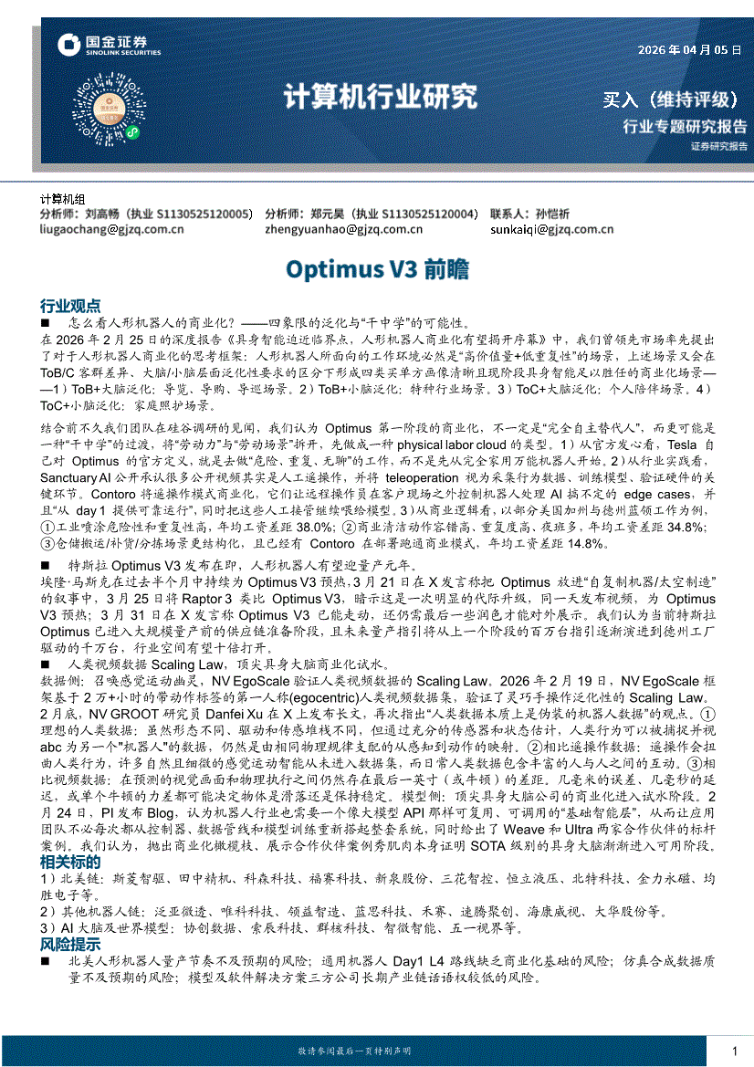 计算机行业:国金证券-计算机行业专题研究报告:Optimus V3前瞻-260405