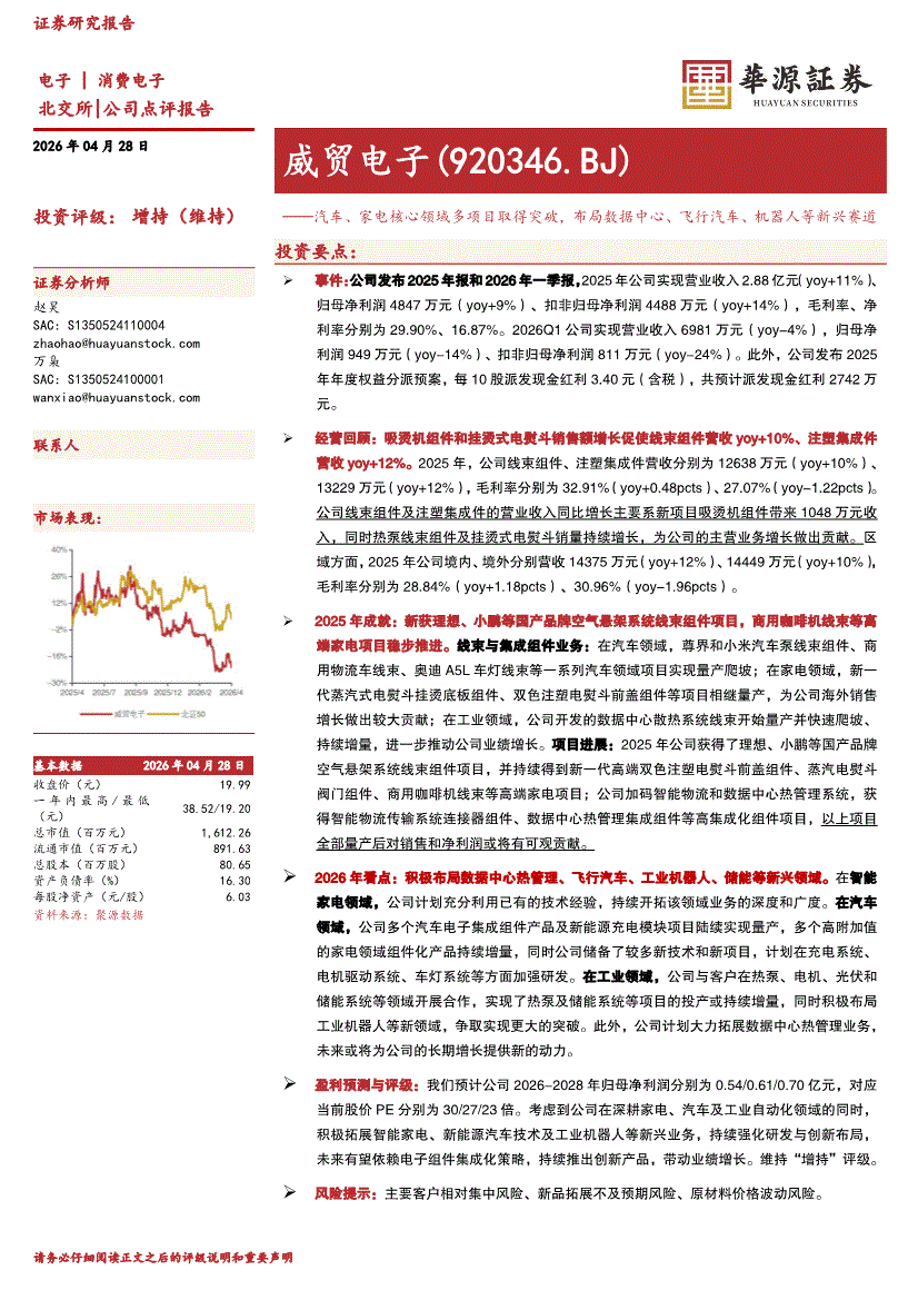 威贸电子:华源证券-威贸电子-920346-汽车、家电核心领域多项目取得突破,布局数据中心、飞行汽车、机器人等新兴赛道-260428