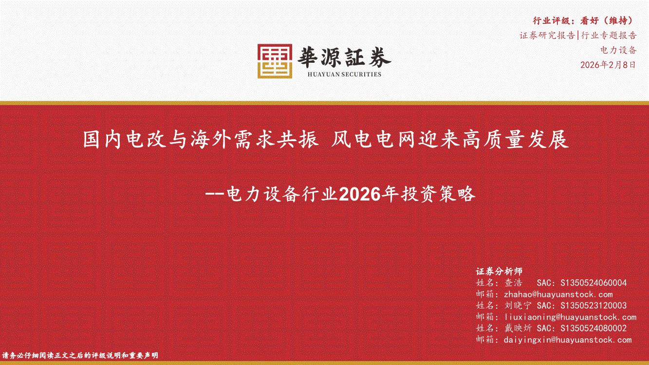电力设备行业:华源证券-电力设备行业2026年投资策略:国内电改与海外需求共振,风电电网迎来高质量发展-260208