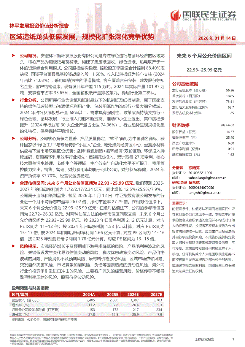 林平发展:国联民生证券-林平发展-603284-投资价值分析报告:区域造纸龙头低碳发展,规模化扩张深化竞争优势-260114