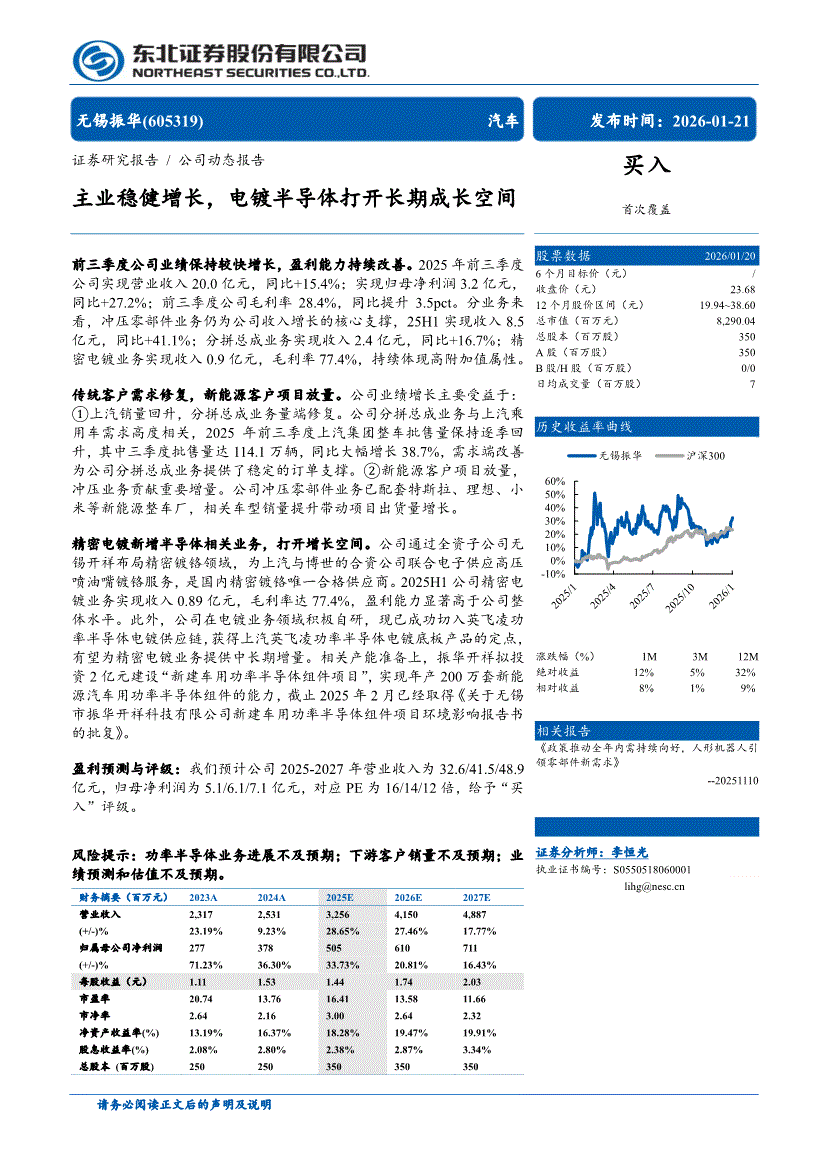 无锡振华:东北证券-无锡振华-605319-主业稳健增长,电镀半导体打开长期成长空间-260121