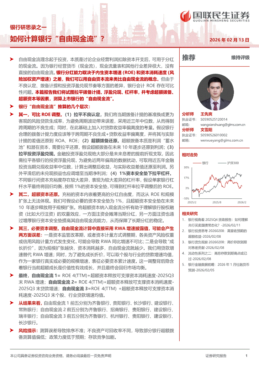 银行业:国联民生证券-银行业研思录之一:如何计算银行“自由现金流”?-260213