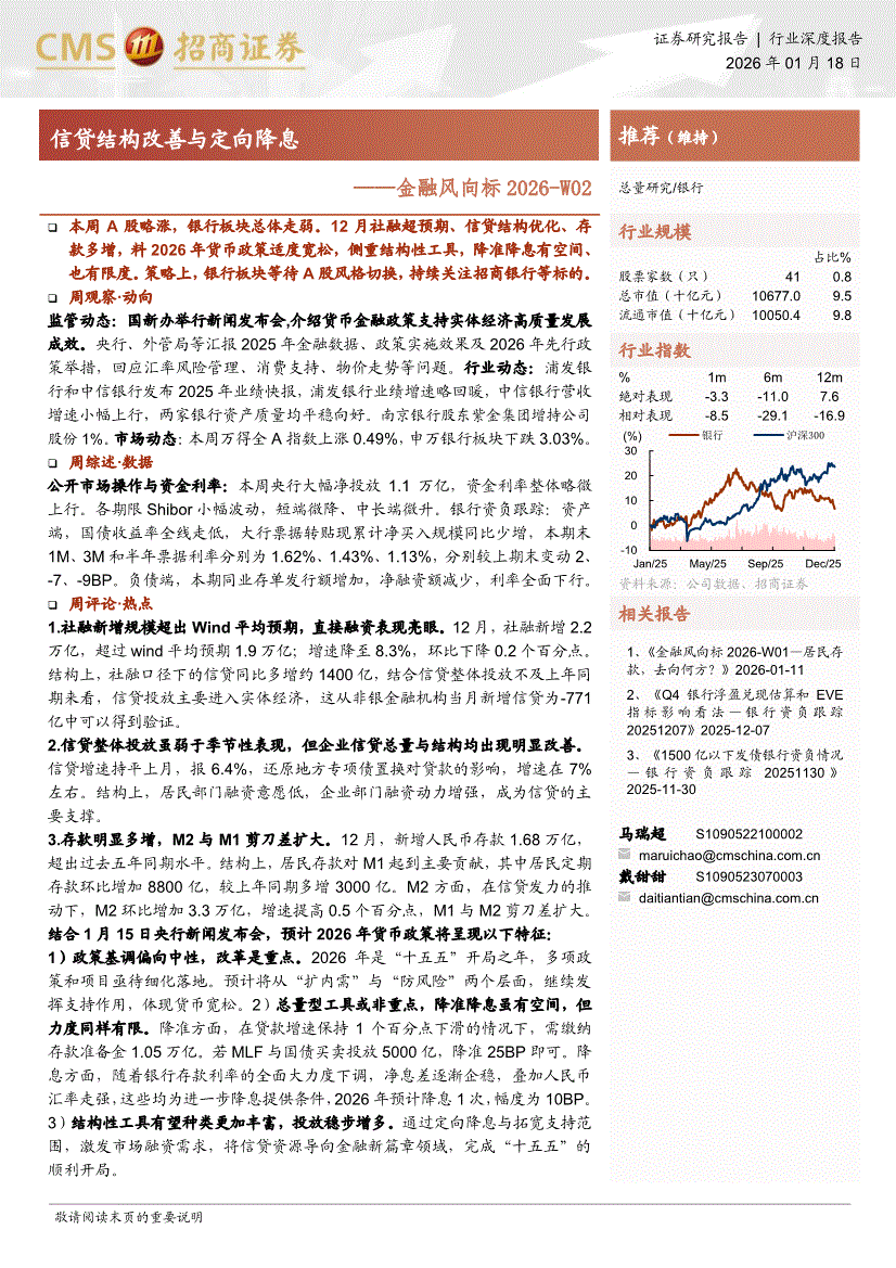 银行业:招商证券-银行业金融风向标2026~W02:信贷结构改善与定向降息-260118