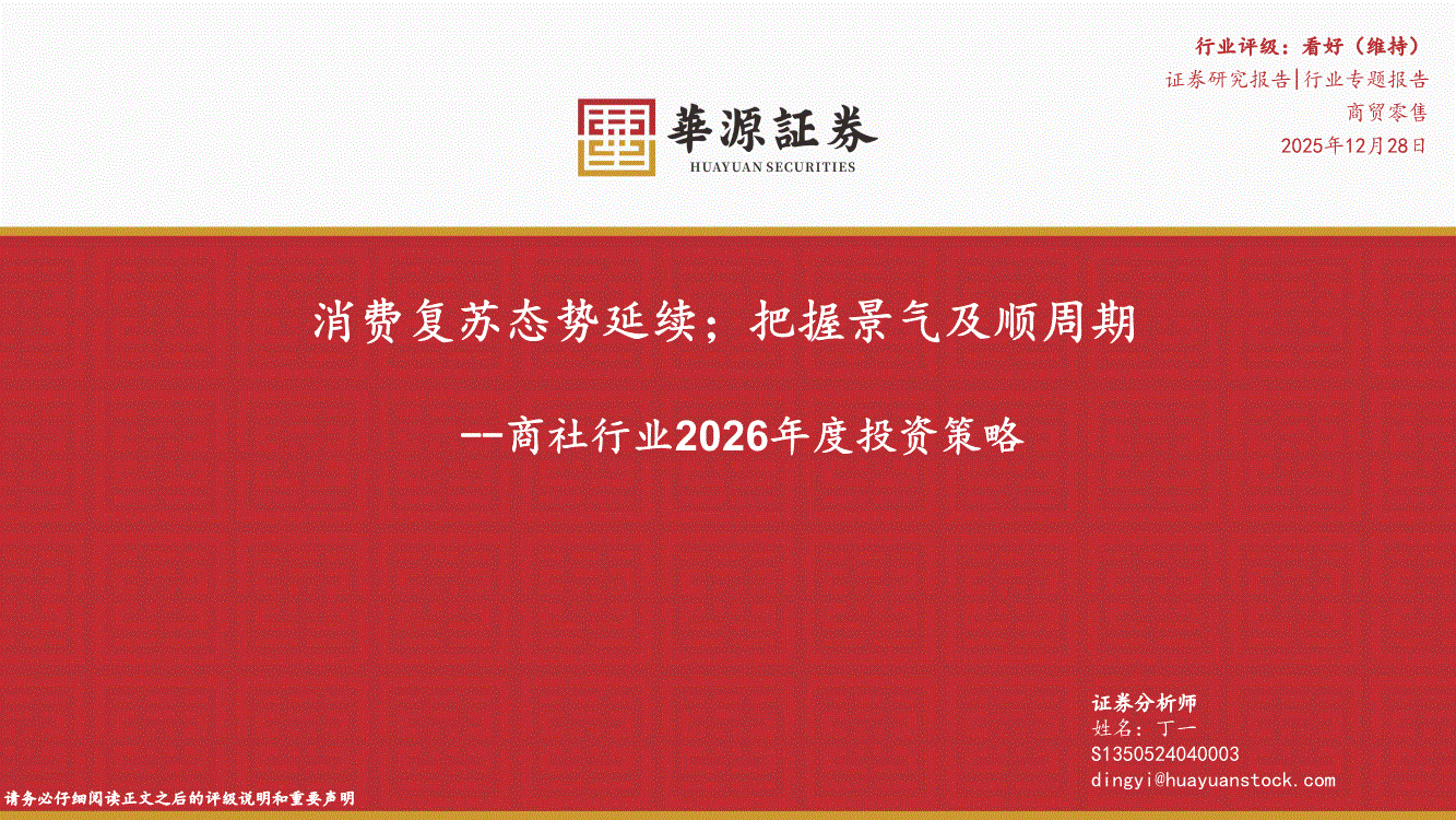 商社行业:华源证券-商社行业2026年度投资策略:消费复苏态势延续;把握景气及顺周期-251228