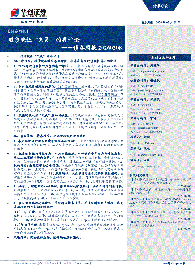 华创证券-债券周报:股债跷板“失灵”的再讨论-260208