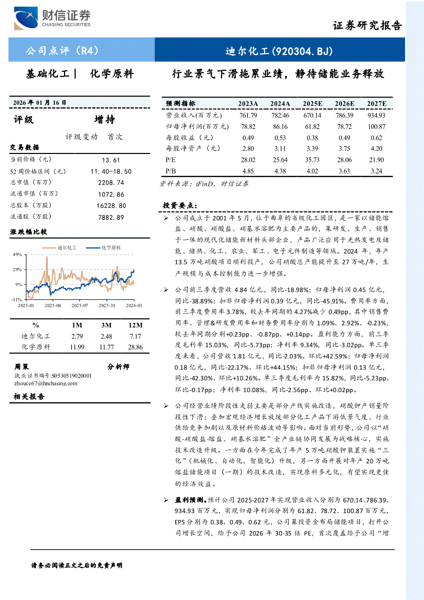 迪尔化工:财信证券-迪尔化工-920304-行业景气下滑拖累业绩,静待储能业务释放-260116