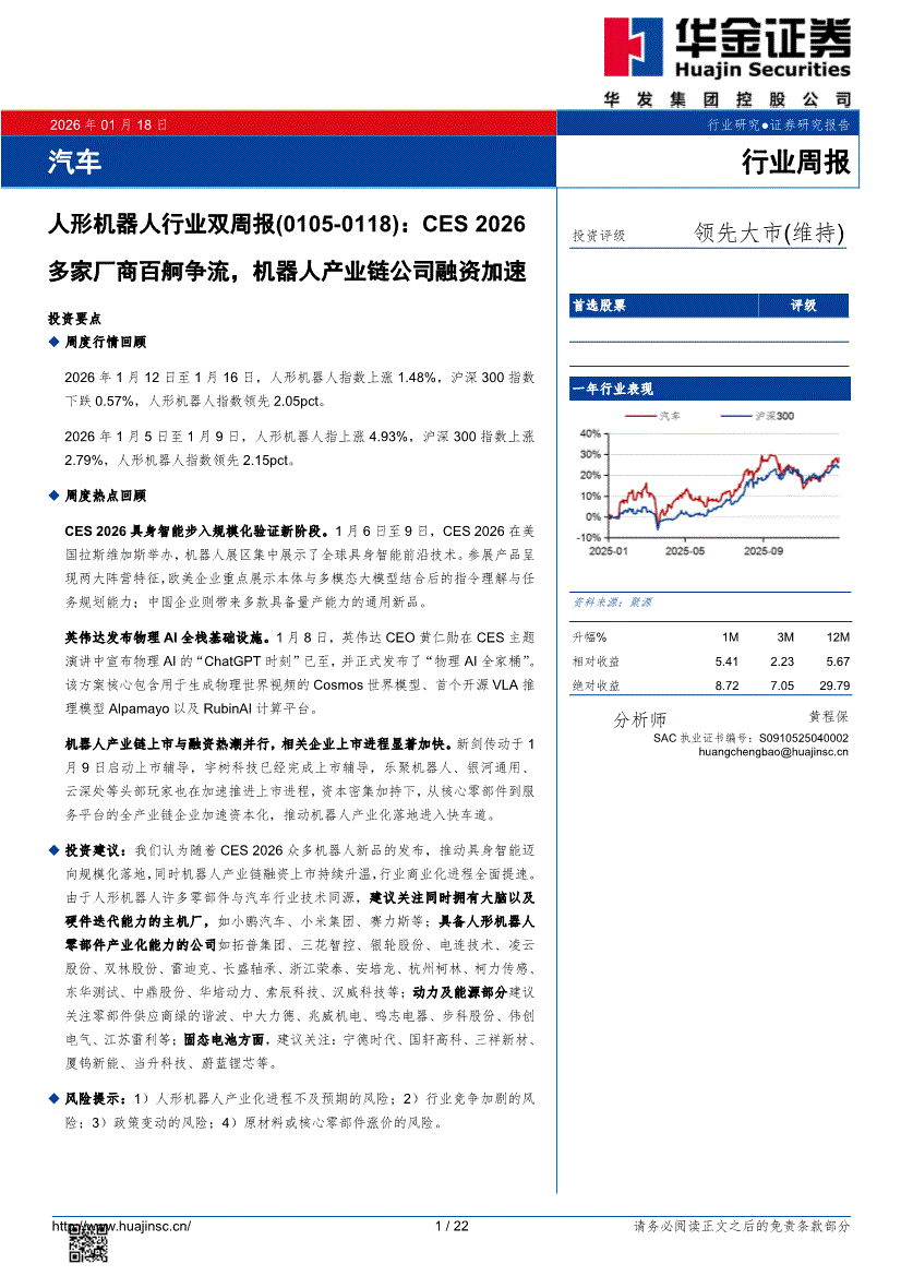 人形机器人行业:华金证券-人形机器人行业双周报:CES 2026多家厂商百舸争流,机器人产业链公司融资加速-260118