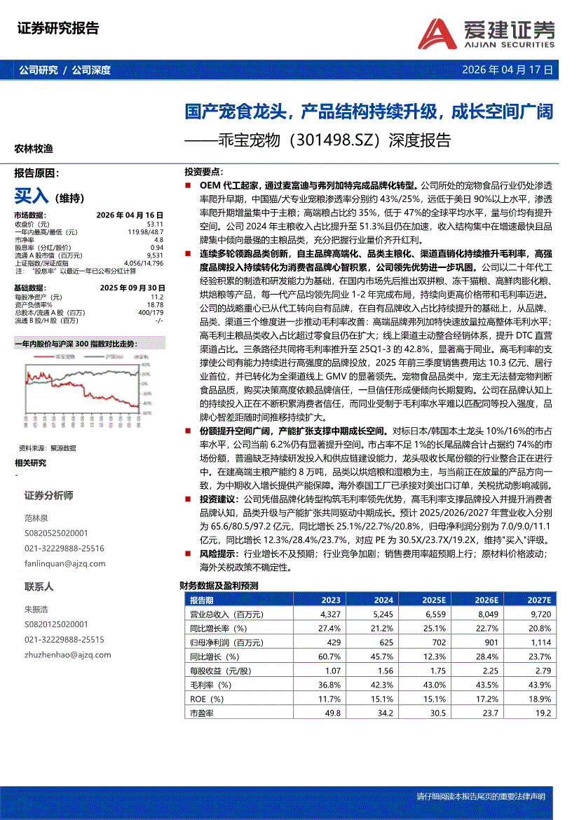 乖宝宠物:爱建证券-乖宝宠物-301498-深度报告:国产宠食龙头,产品结构持续升级,成长空间广阔-260417