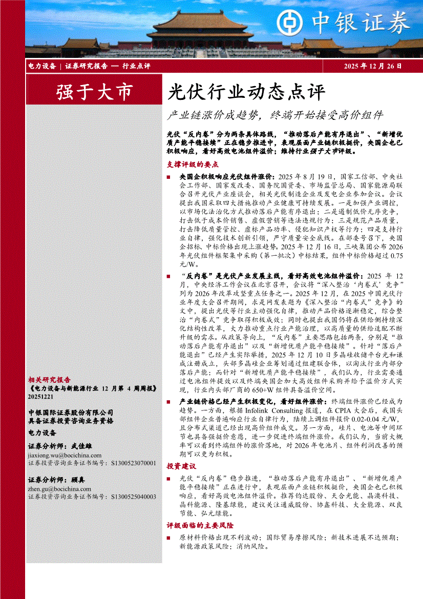 光伏行业:中银国际-光伏行业动态点评:产业链涨价成趋势,终端开始接受高价组件-251226