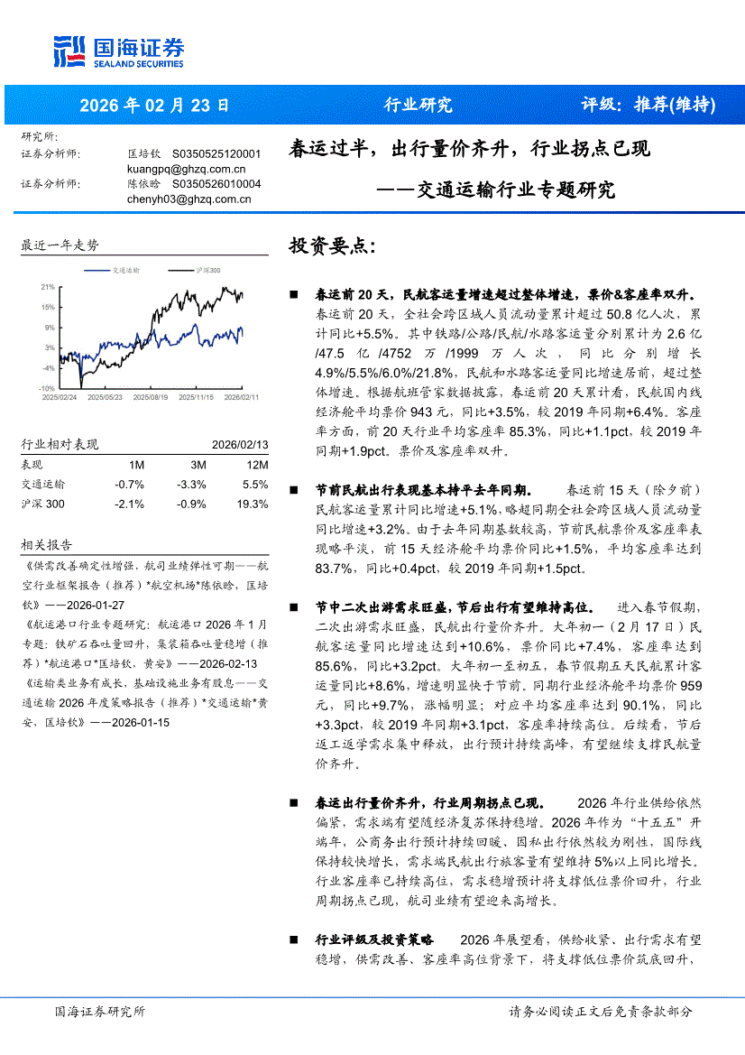 交通运输行业:国海证券-交通运输行业专题研究:春运过半,出行量价齐升,行业拐点已现-260223