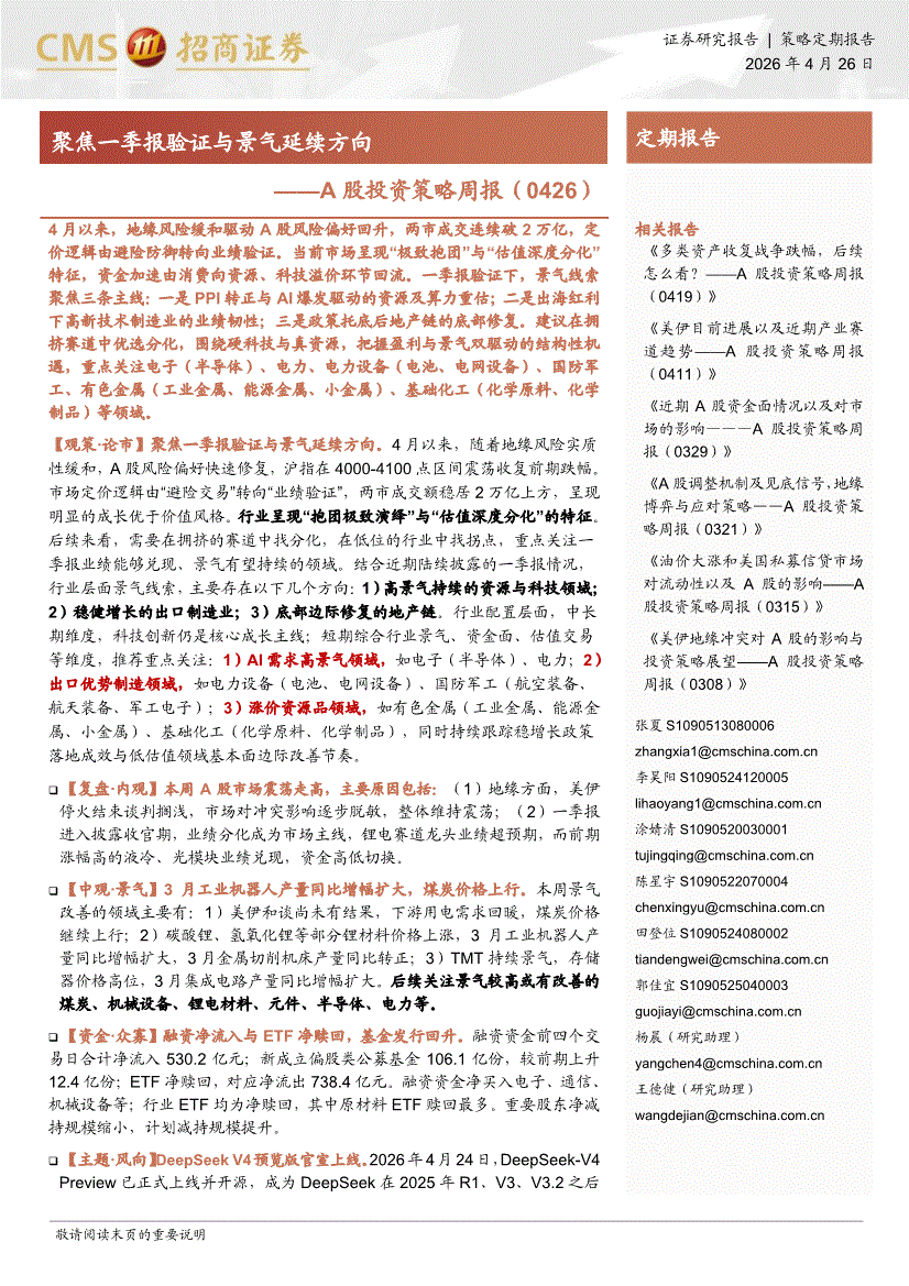 招商证券-A股投资策略周报:聚焦一季报验证与景气延续方向-260426