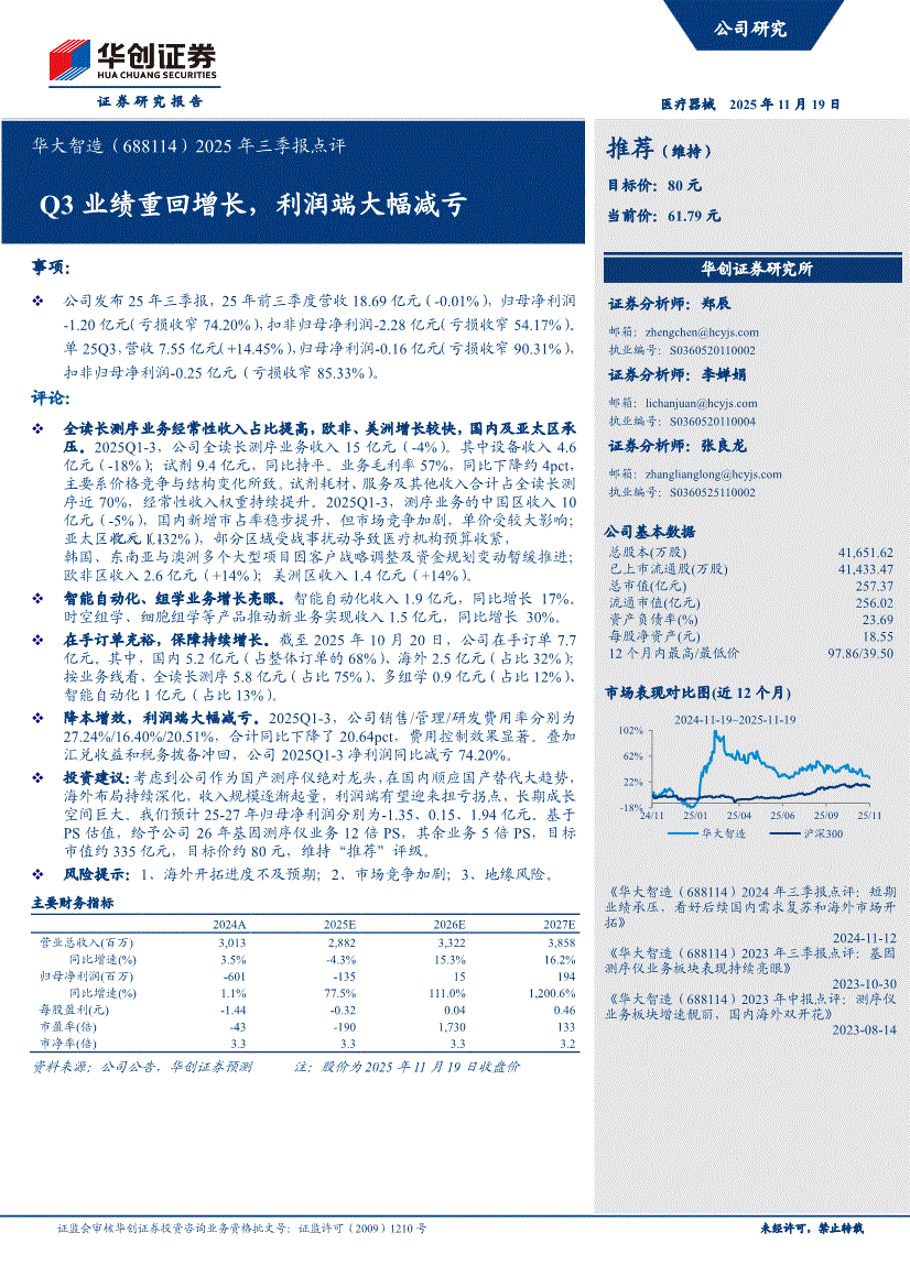 华大智造:华创证券-华大智造-688114-2025年三季报点评:Q3业绩重回增长,利润端大幅减亏-251119