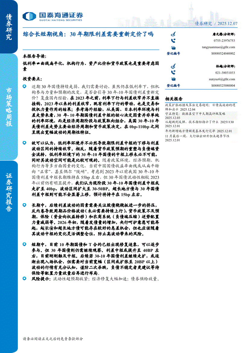 国泰海通证券-综合长短期视角:30年期限利差需要重新定价了吗-251207
