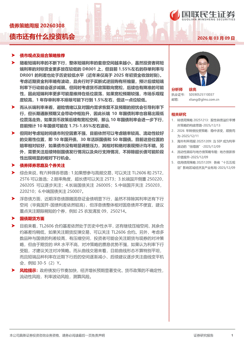 国联民生证券-债券策略周报:债市还有什么投资机会-260309