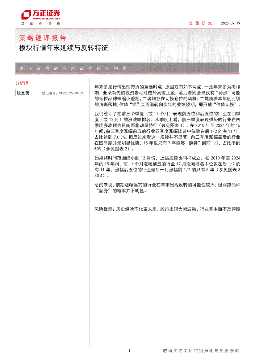 方正证券-策略速评报告:板块行情年末延续与反转特征-250919
